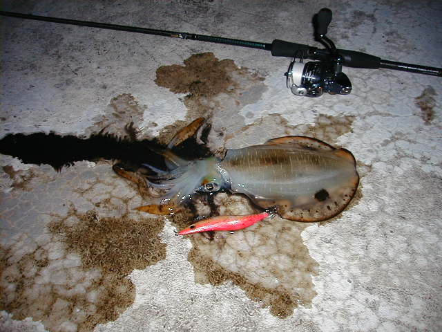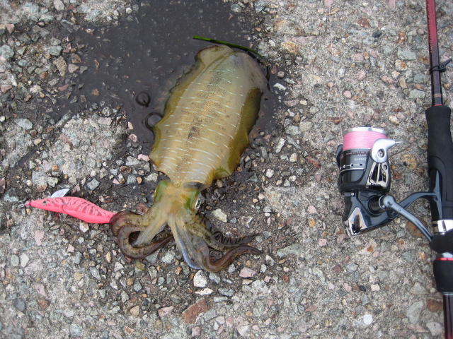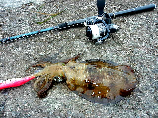 小さかったイカもそろそろ大きな固体が混ざり始めた。賛否両論いろいろあるけど、オレは小さいイカの食味が好き。 ネイチャーゲームは個人のモラルの問題?う〜ん・・・ま、オレは偉そうなことを言えるほど善人じゃないことは確かだ。 |